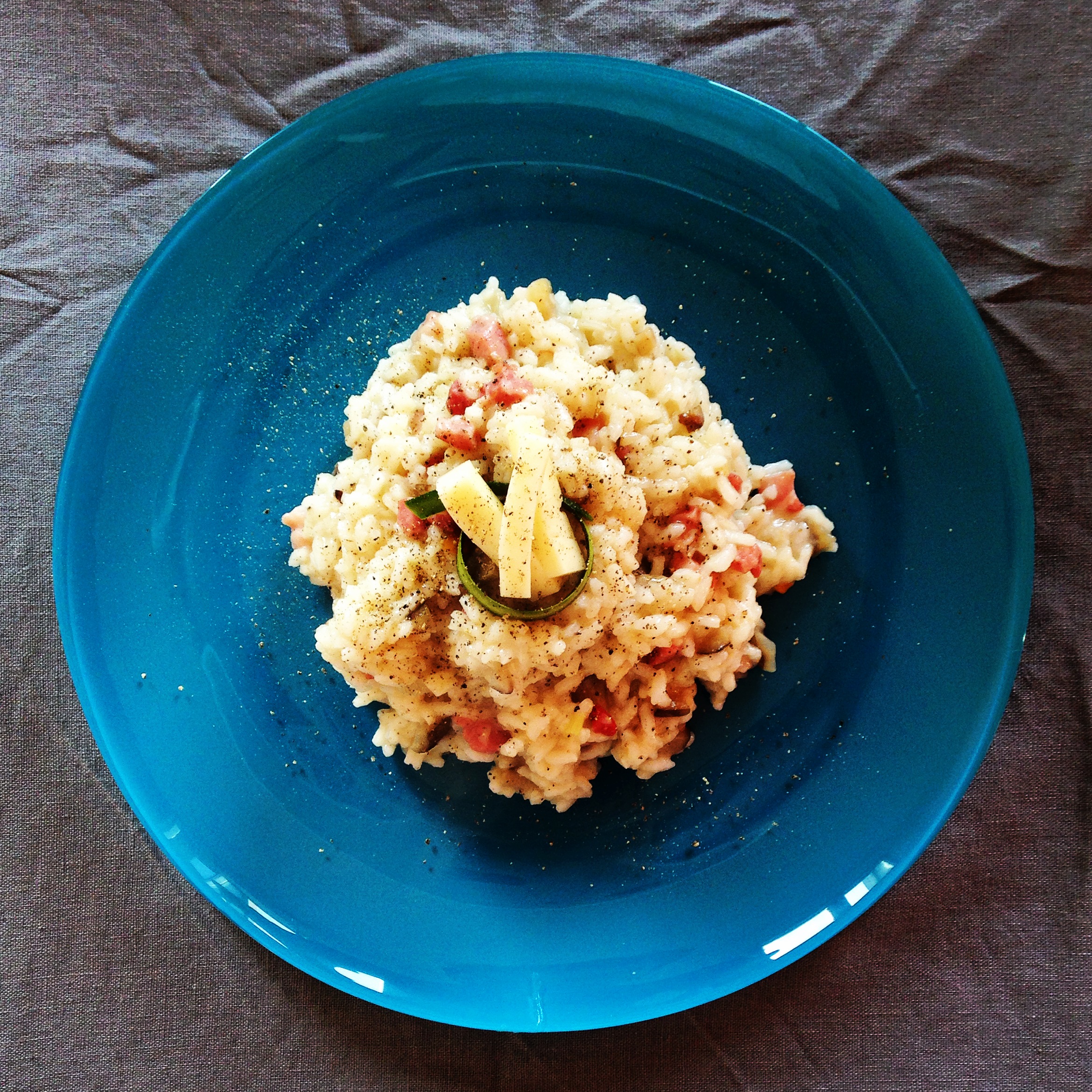 Impiattamento suggerito | Spadellare una abbondante porzione a convitato, coronandola con una piscinetta fatta con una strisciolina di zucchina tirata via col pelapatate, arrotolata e metterci il taleggio all’interno. In poco tempo vedrete che il taleggio si scioglierà e riempirà la piscina. Impepare abbondatemente il tutto.
