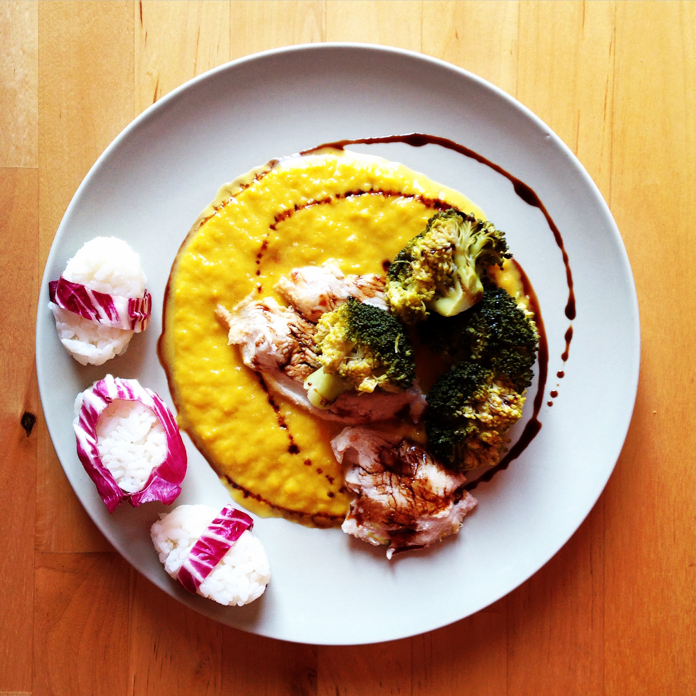 Avete presente quella sensazione di quando apri il frigo e trovi quattro cose che non c’entrano assolutamente niente tra loro? Confusione, smarrimento, in casi estremi anche panico. Il piatto CON-fusion di oggi unisce quattro cose che potrebbero stare perfettamente su da sole, ma fuse insieme hanno quelchenonsoche in più. Provare per credere! Tacchino marinato su salsa di peperoni, broccoli al vapore e nigiri di riso.